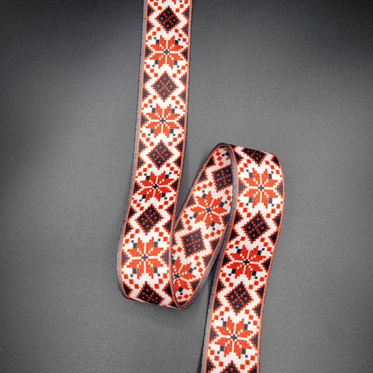 این بند پارچهای با طرح سنتی هندسی و گل برفی در ترکیب رنگهای نارنجی، مشکی و سفید، انتخابی خاص و متفاوت برای تزئینات و دوختهای خلاقانه است. جنس مقاوم و کیفیت بالای آن باعث میشود هم در پروژههای هنری و هم در کارهای تزئینی جلوهای چشمگیر ایجاد کند.