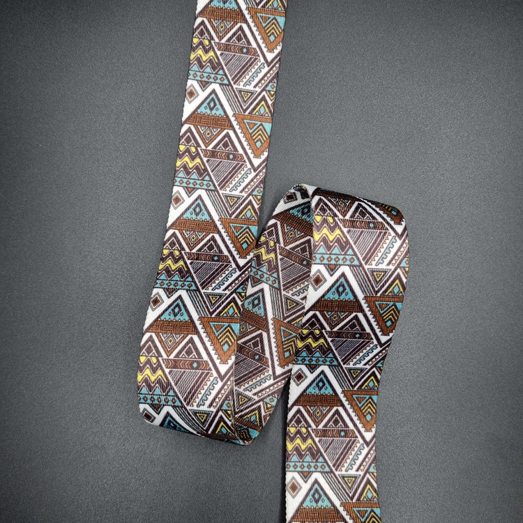 این بند پارچهای با عرض تقریبی ۳/۸ سانتیمتر ، محصولی پرانرژی و مقاوم برای افزودن جزئیات هنری به کیفهای دستی، کولهپشتیهای مسافرتی، بند کیف شانهای یا لوازم جانبی مانند کیفهای کوچک و لباسهای تابستانی است. ساختهشده از پارچه بافتدار با کیفیت بالا (مانند پلیاستر یا کتان ترکیبی)، این بند دوام عالی در برابر سایش، کشش و شستشو دارد و برای استفاده روزمره مناسب است. طراحی آن با الگوهای هندسی تکراری (شامل اشکال مثلثی و لوزیمانند در سبک آزتک یا بوهمیان)، ظاهری قبیلهای، ماجراجویانه و چندرنگی ایجاد میکند. پالت رنگی آن شامل قهوهایهای گرم (تراکوتا و برنزی)، خاکستریهای ملایم، سفیدهای خالص برای کنتراست، آبی فیروزهای/سبزآبی برای طراوت و زرد خردلی ظریف برای گرما است. این الگوها حس فرهنگهای بومی، سفرهای جهانی و سبکهای فستیوالی را القا میکنند و بند را به گزینهای ایدهآل برای شخصیسازی محصولات ساده تبدیل مینمایند.