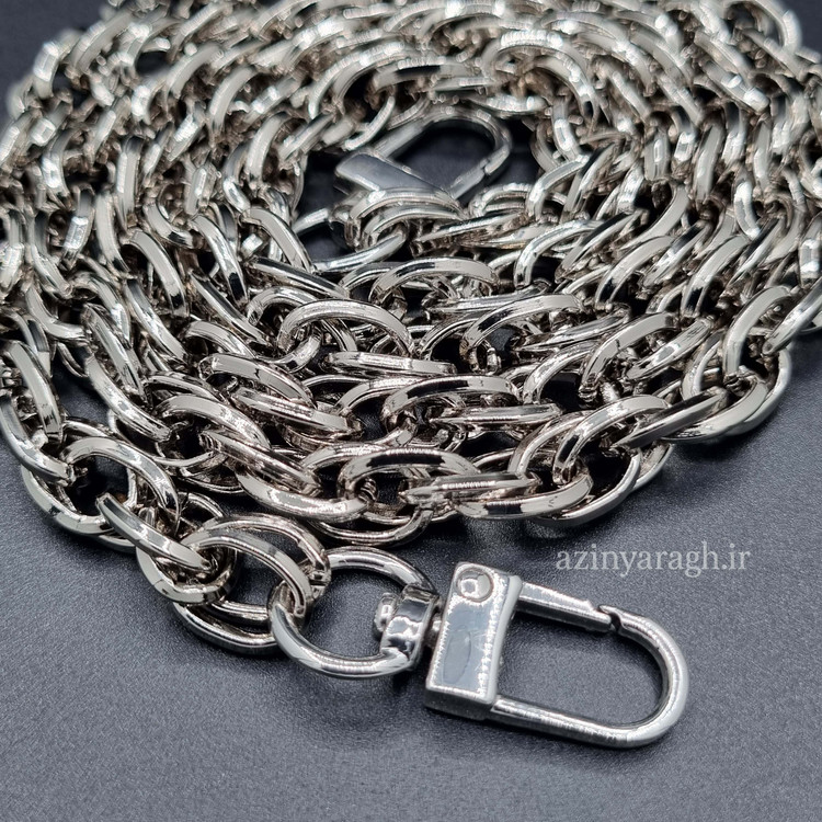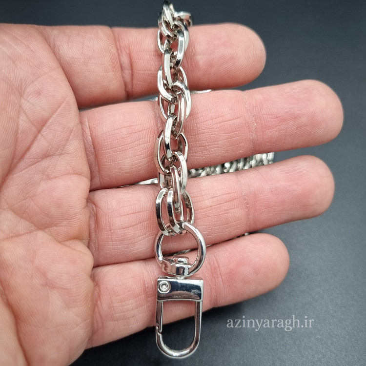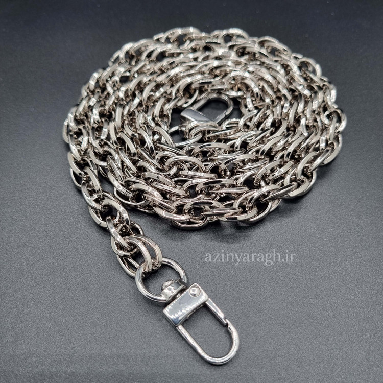 زنجیر بند کیف نقرهای با طراحی کلاسیک، مناسب برای افزودن جلوه شیک و مدرن به کیفهای دستی و شانهای. ساخته شده از آلیاژ باکیفیت با روکش نقرهای براق، مقاوم و سبک.