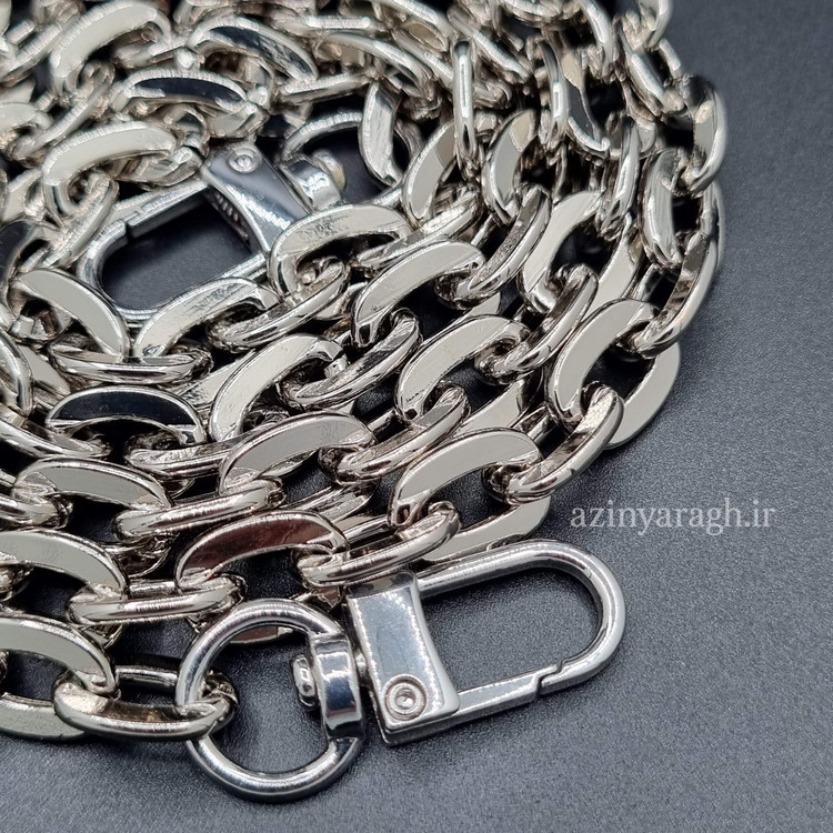 زنجیر بند کیف نقرهای با طراحی کلاسیک، مناسب برای افزودن جلوه شیک و مدرن به کیفهای دستی و شانهای. ساخته شده از آلیاژ باکیفیت با روکش نقرهای براق، مقاوم و سبک.